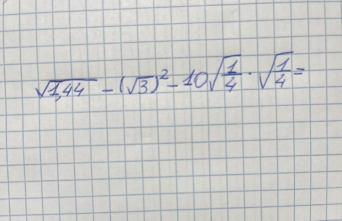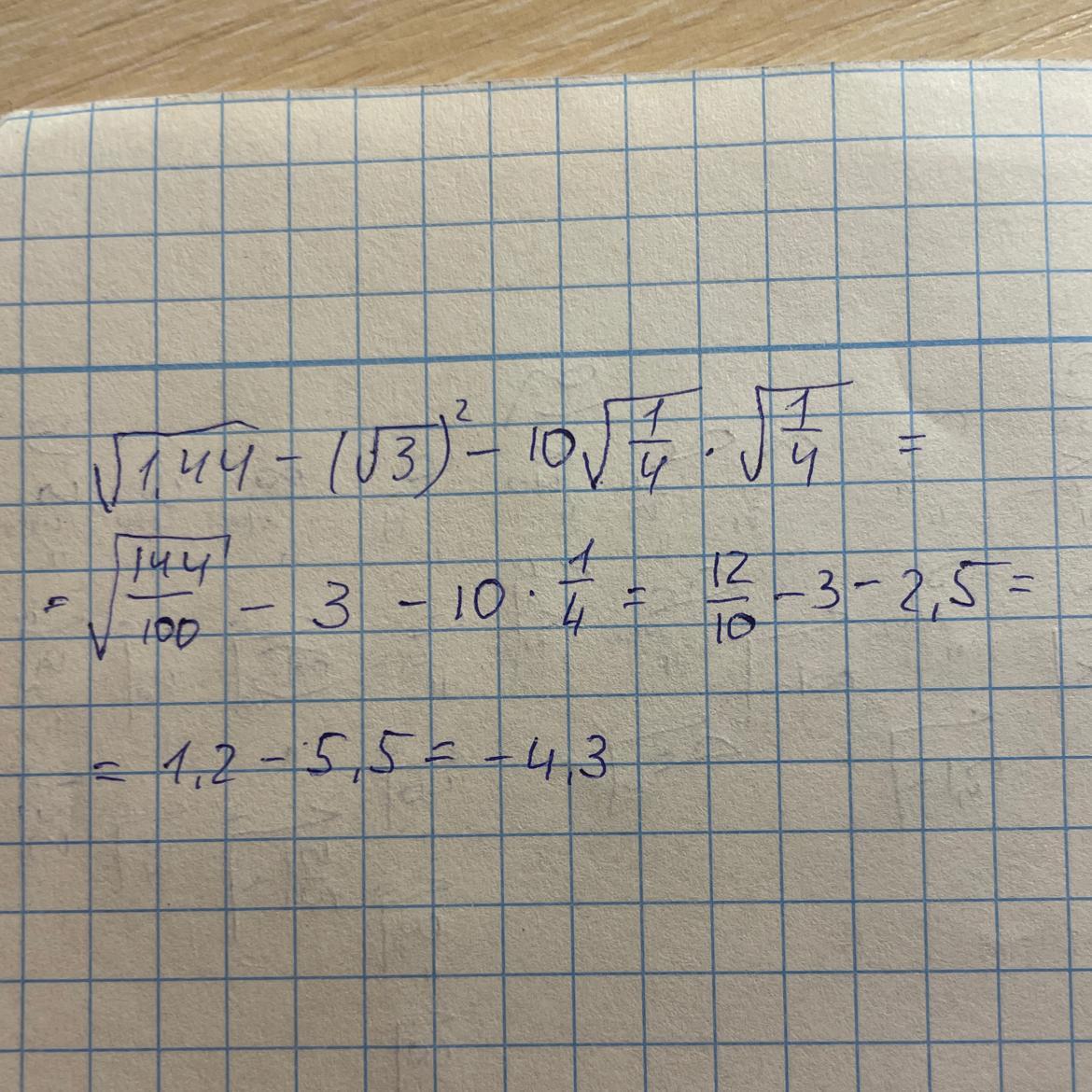 √1,44 - (√3)² - 10√1/4 * √1/4 =