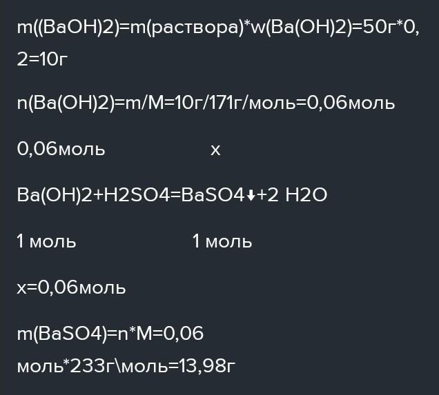 m((BaOH)2)=m(растворa)*w(Ba(OH)2)=50г*0,2=10г
