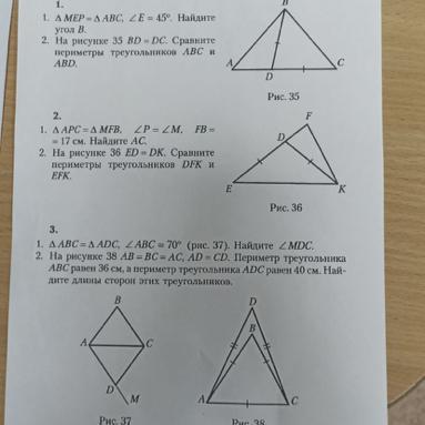 1. ∆ MEP = ∆ ABC, E = 45°. Найдите