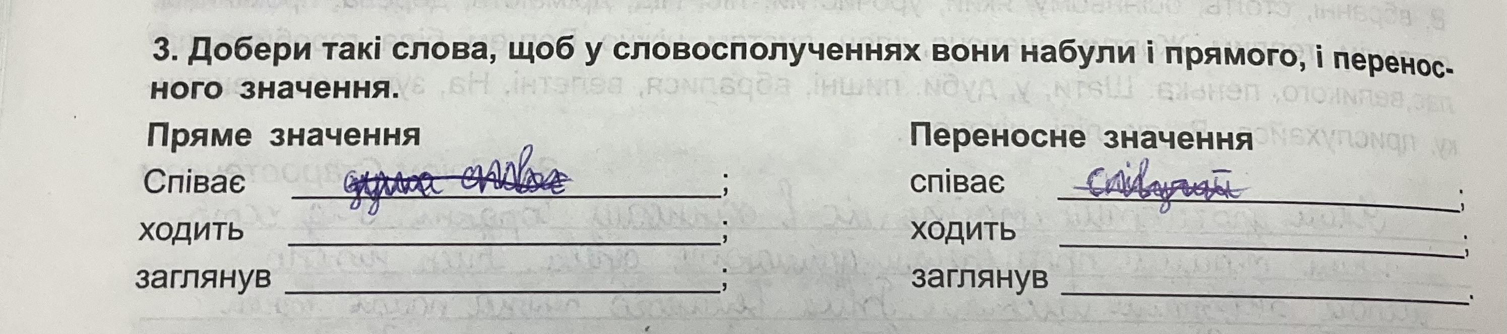 1. "Співає серце" - пряме значення: відноситься до музичного співу; переносне значення: виражає радість або щасливий настрій.