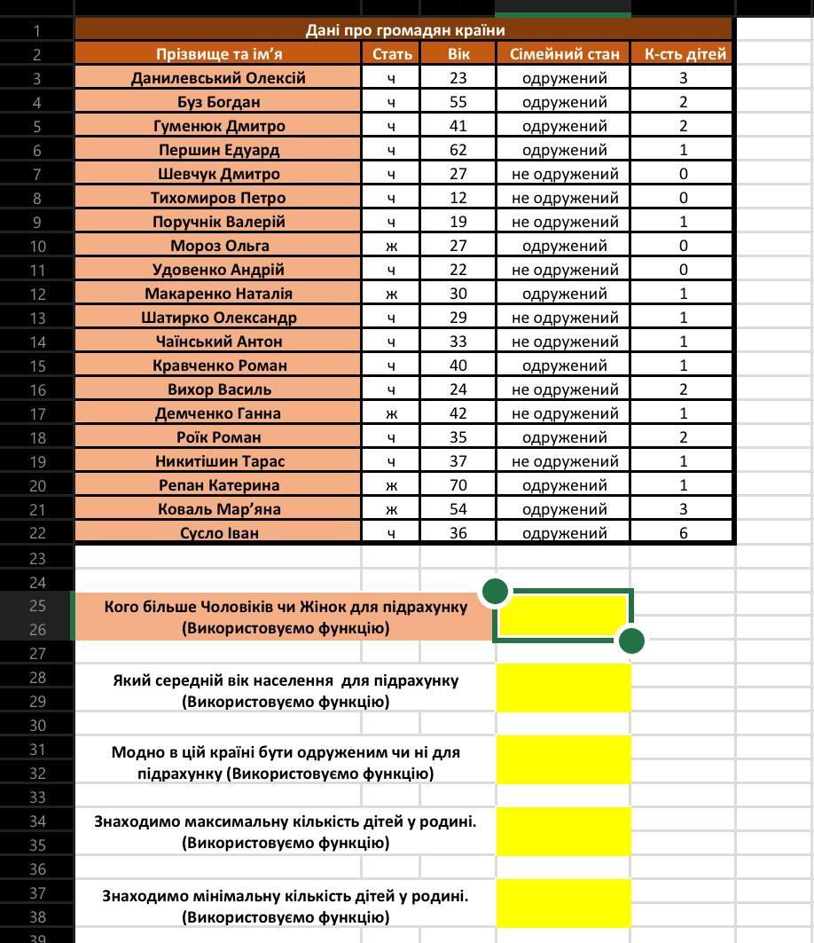 =ЕСЛИ(СЧЁТЕСЛИ(D3:D22; "одружений") > СЧЁТЕСЛИ(D3:D22; "не одружений"); "так"; "ні")