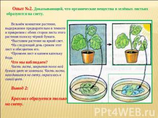 Приведите примеры опытов или наблюдений,доказывающие,что растение образует органические вещества,используя свет.