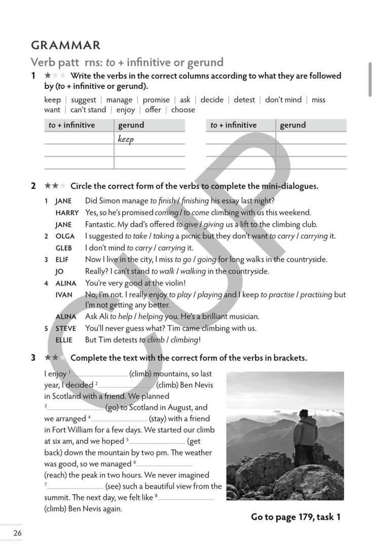 verbs + infinitive: manage, promise, ask, decide, want, offer, choose