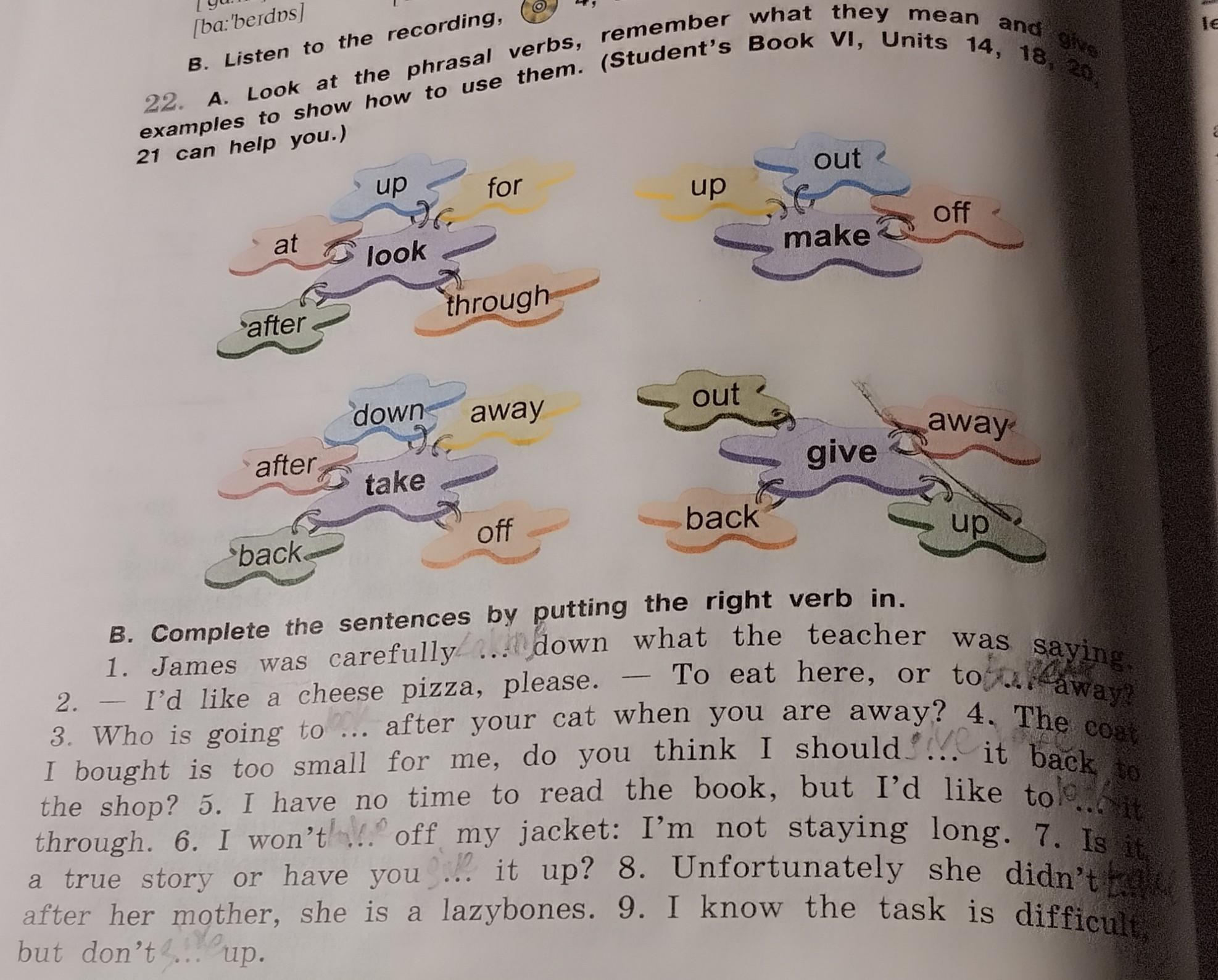 3. SB. Unit 2, eх.22. Фразовый глагол to look, to make (выписать значение каждого, если до этого не писали, на каждый глагол придумать свой пример)