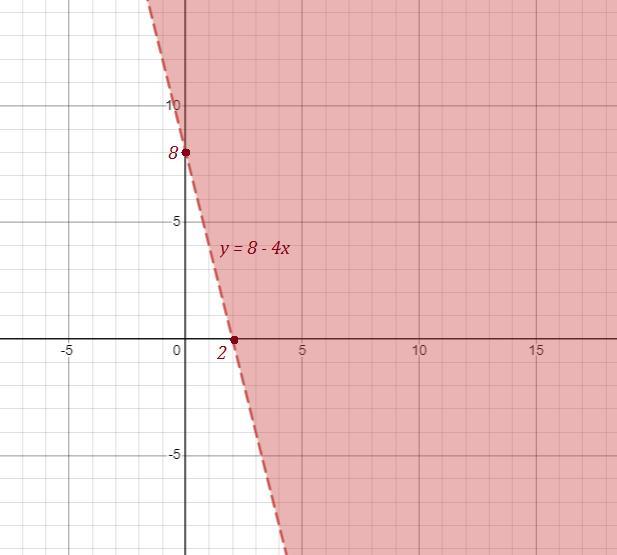 Так как на прямой у = 8 - 4х все точки имеют значения ординат "у" , равные " 8 - 4х " , то точки, у которых ординаты больше " 8 - 4х " будут расположены выше точек на прямой .