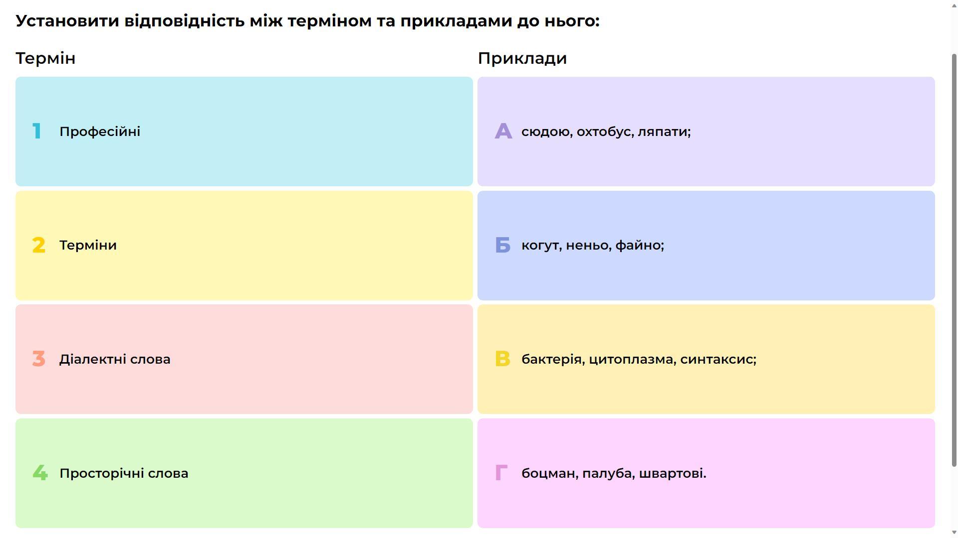 1 в 2. г 3. а 4б. якось так