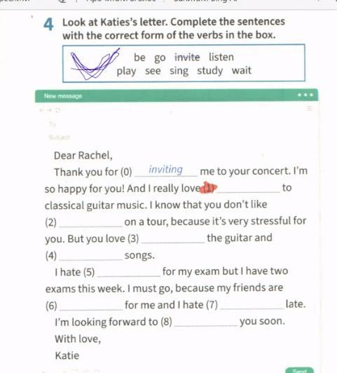 1. Listening, 2. 3. Playing, 4. Singing, 5. Studying, 6. Waiting, 7. Being, 8. See