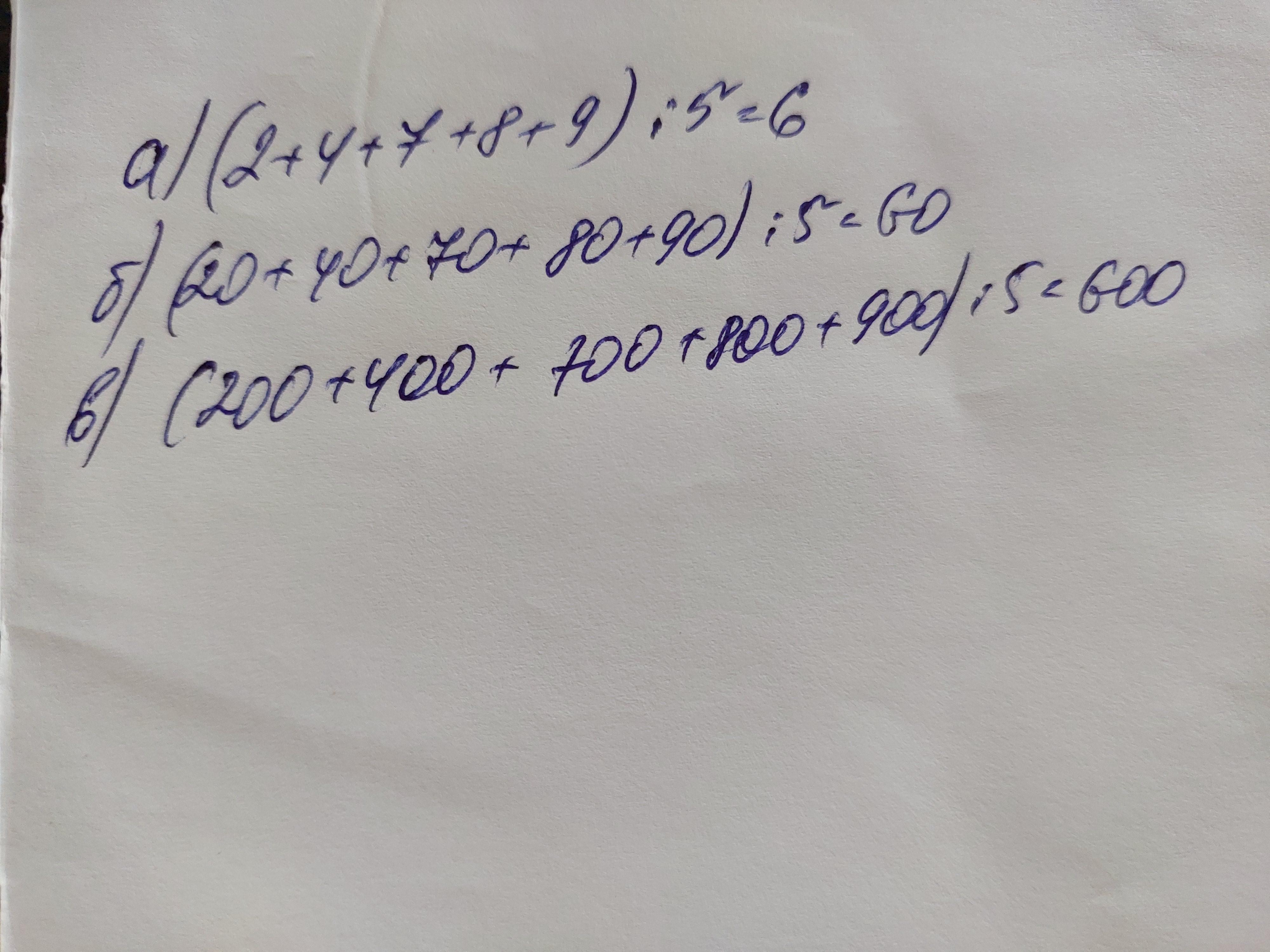 a) 2, 4, 7, 8, 9; 6) 20, 40, 70, 80, 90; в) 200, 400, 700, 800, 900. Числовые наборы б) и в) получены из набора чисел а) умножением всех чи- сел на 10 и на 100. Как средние значения наборов б) и в) можно получить из среднего значения набора а)?
