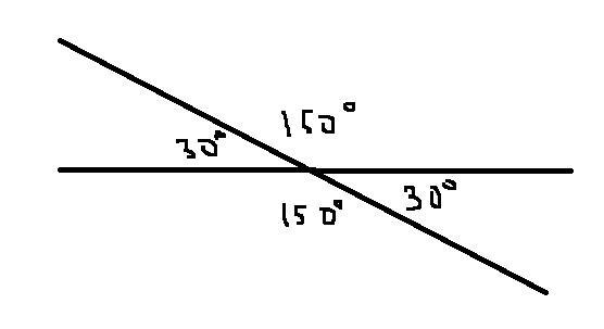 при пересечении двух прямых образовались такие углы что сумма двух из них равна 60 градусов найдите все углы