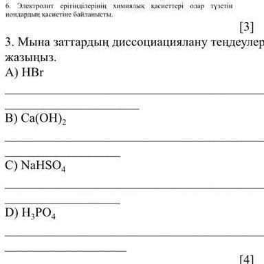Мына заттардын диссоциациялану теңдеулерін жазыңыз