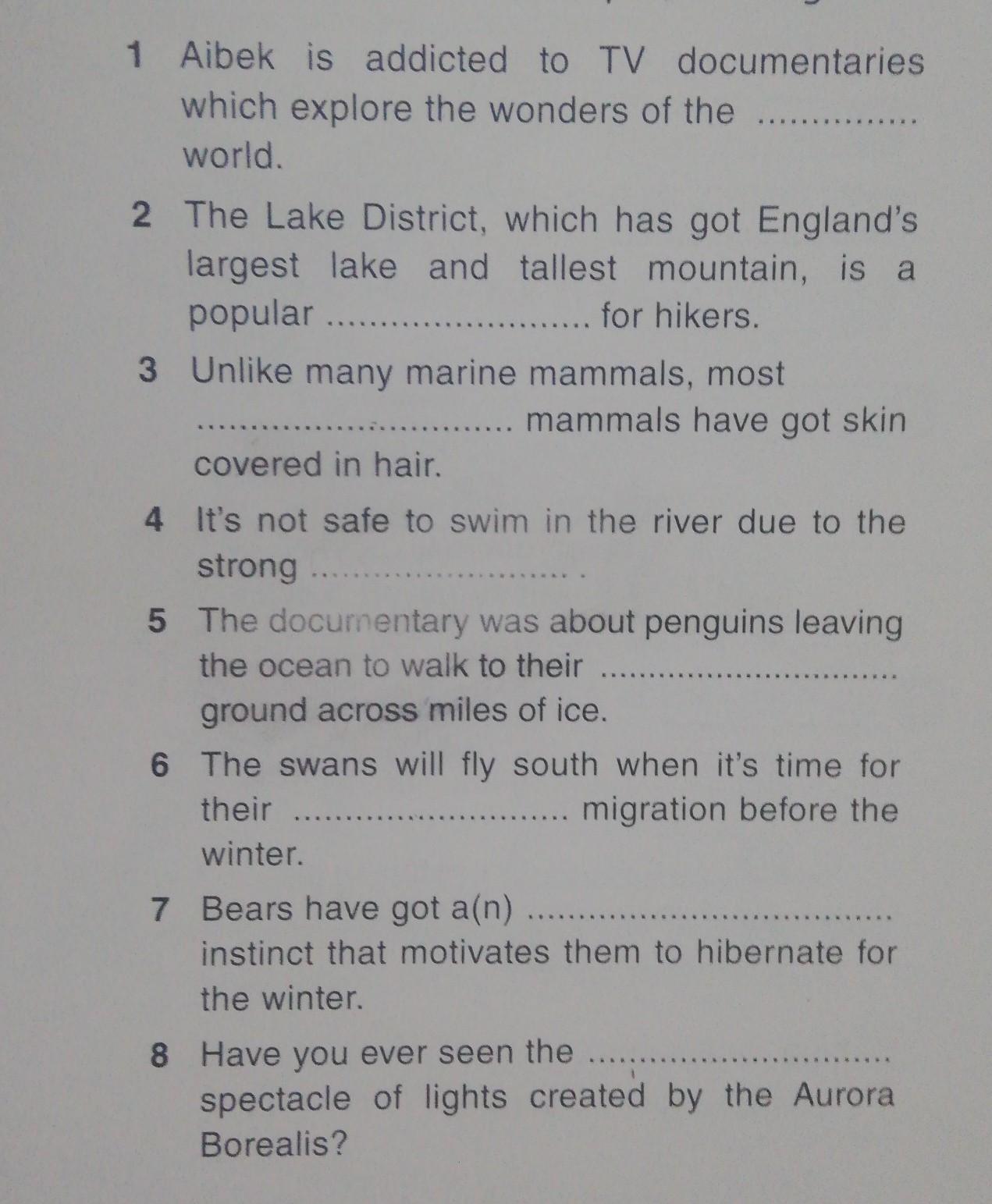 1 Aibek is addicted to TV documentaries which explore the wonders of the natural world.