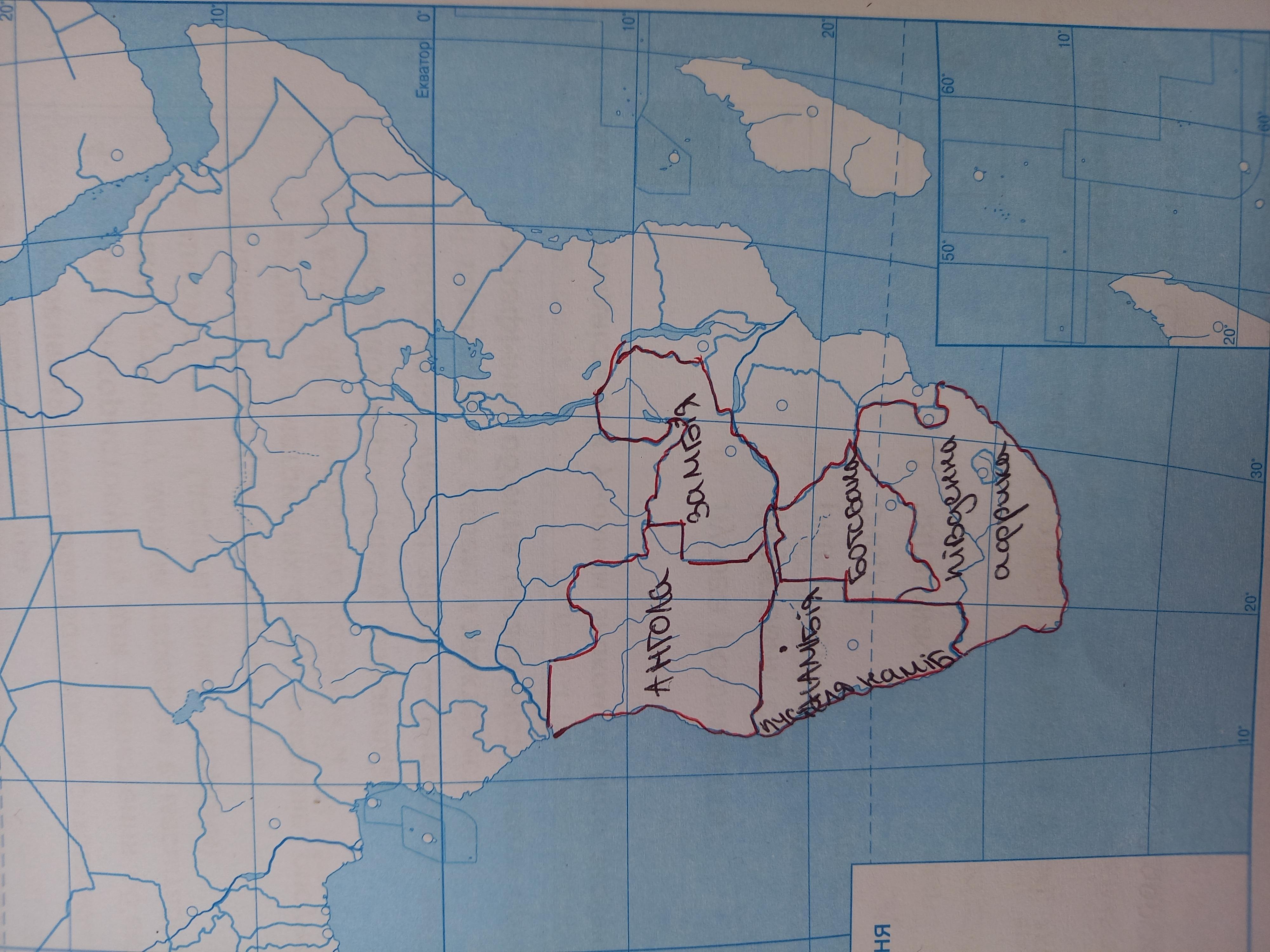 4. Познач на контурній карті Африки Намібію, сусідні країни, а також пустелю, що простягається територією держави.