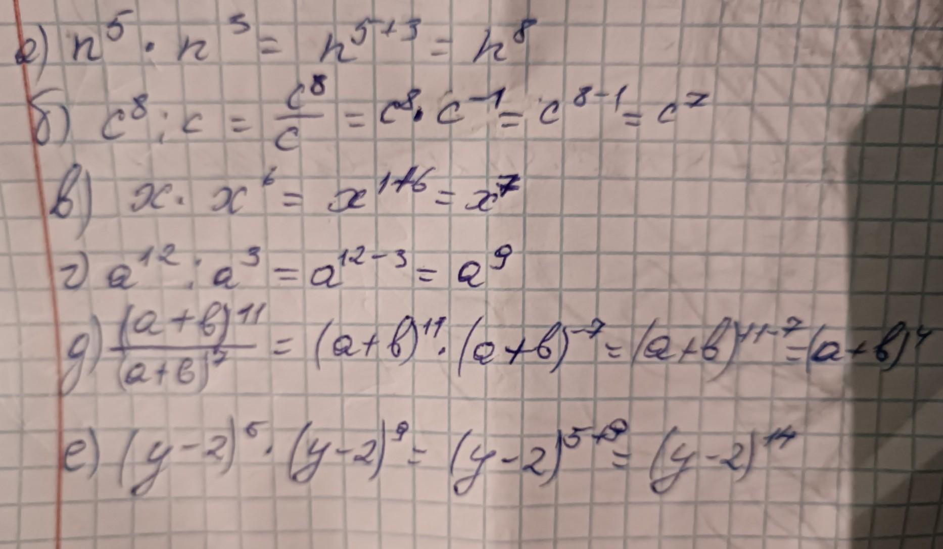 е) 〖(y-2)〗^5•〖(y-2)〗^9