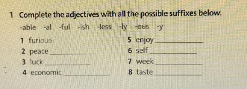 1 Complete the adjectives with all the possible