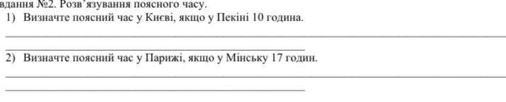 1) Щоб визначити поясний час у Києві порівняно з Пекіном, треба врахувати, що Київ знаходиться за місцевим часом на 6 годин вперед (GMT+2), тоді як Пекін знаходиться за місцевим часом на 8 годин вперед (GMT+8). Різниця в часі між Києвом і Пекіном складає 8 годин (8 - 2 = 6). Таким чином, у Києві зараз буде 16 година (10 годин Пекінського часу плюс 6 годин різниці в часі).