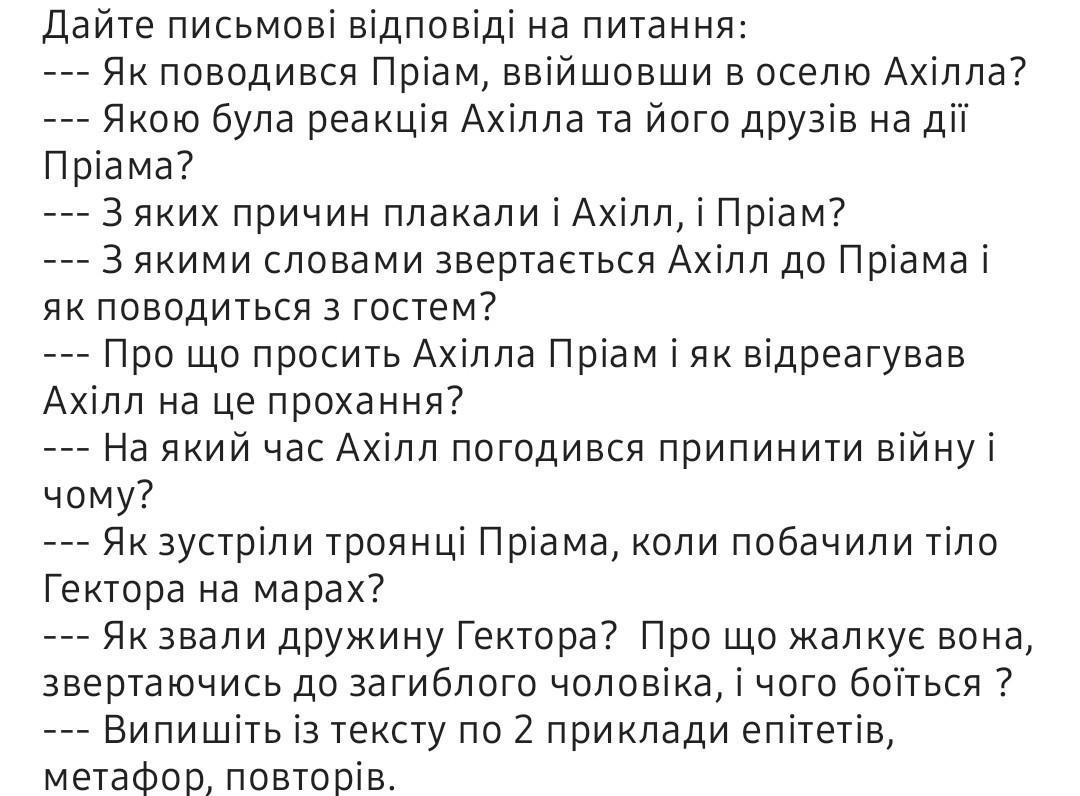 будь ласка, ДАЮ 50 БАЛЛОВ!! Самостійна робота над текстом "Викуп Пріамом тіла Гектора"