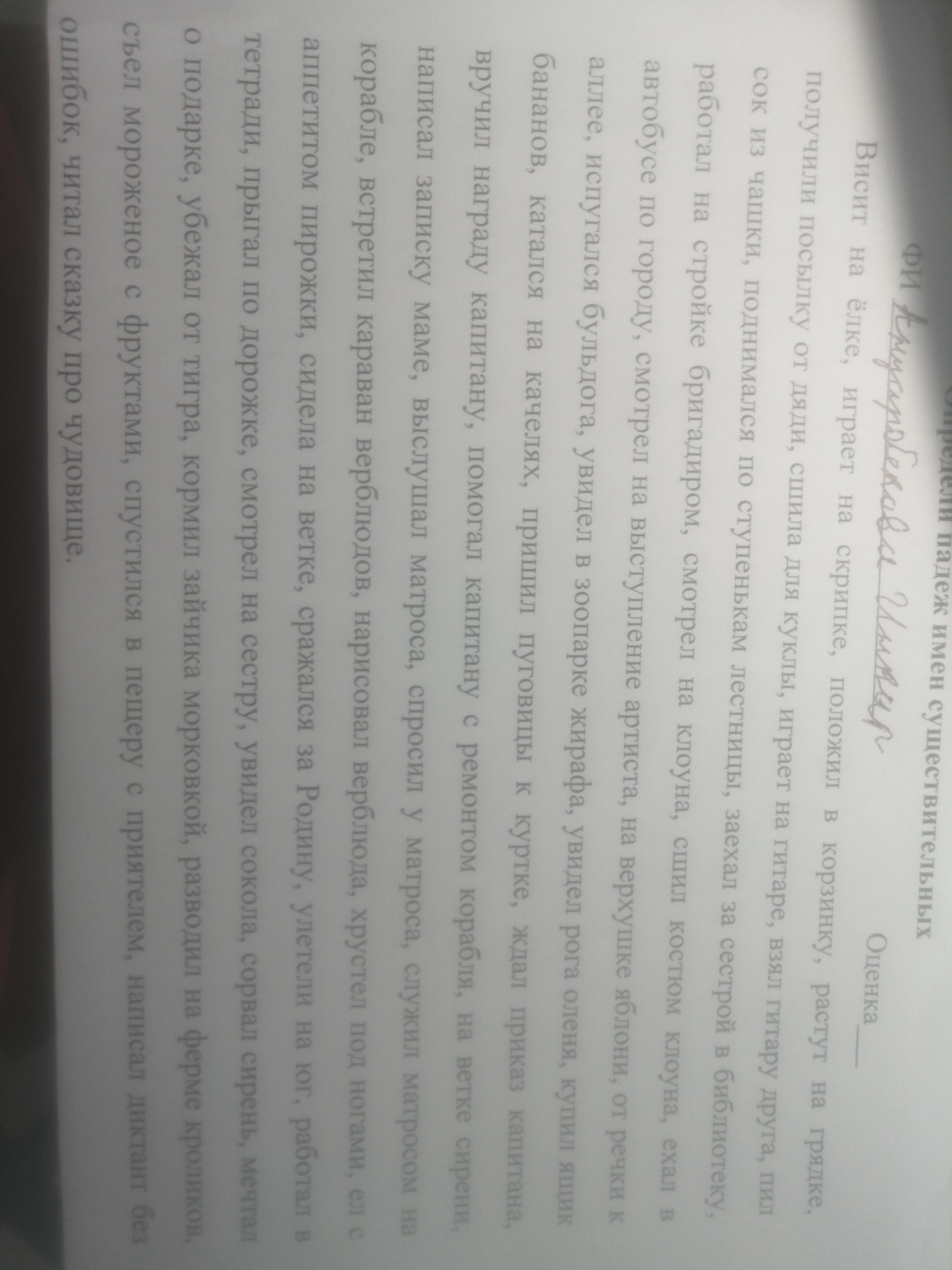 Определи падеж имён существительных (Текст в форте)