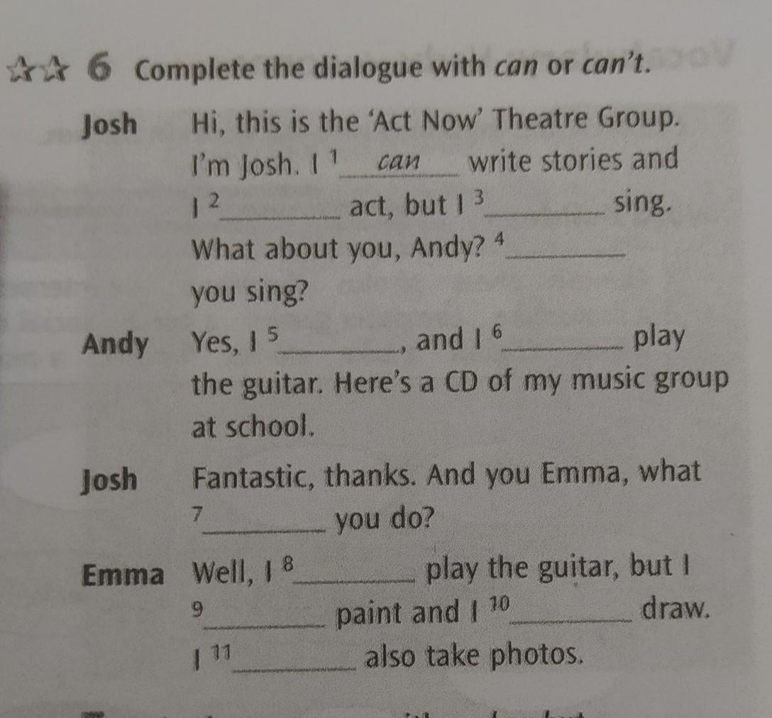 Кто может правильно поставить can или can't дам 40 балов!