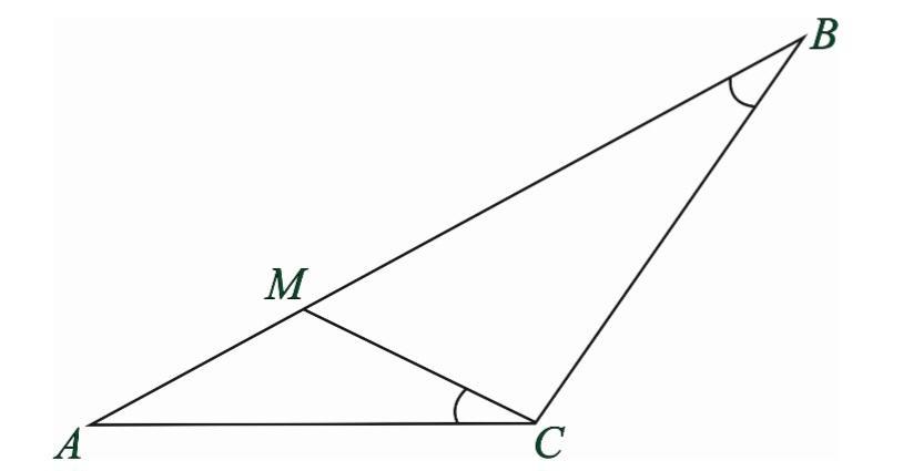На стороні АВ трикутника АВС вибрано точку M так, що кут В = АСМ (див. рисунок). Знайдіть АВ, якщо СМ: ВС-5:9 AC - 10.