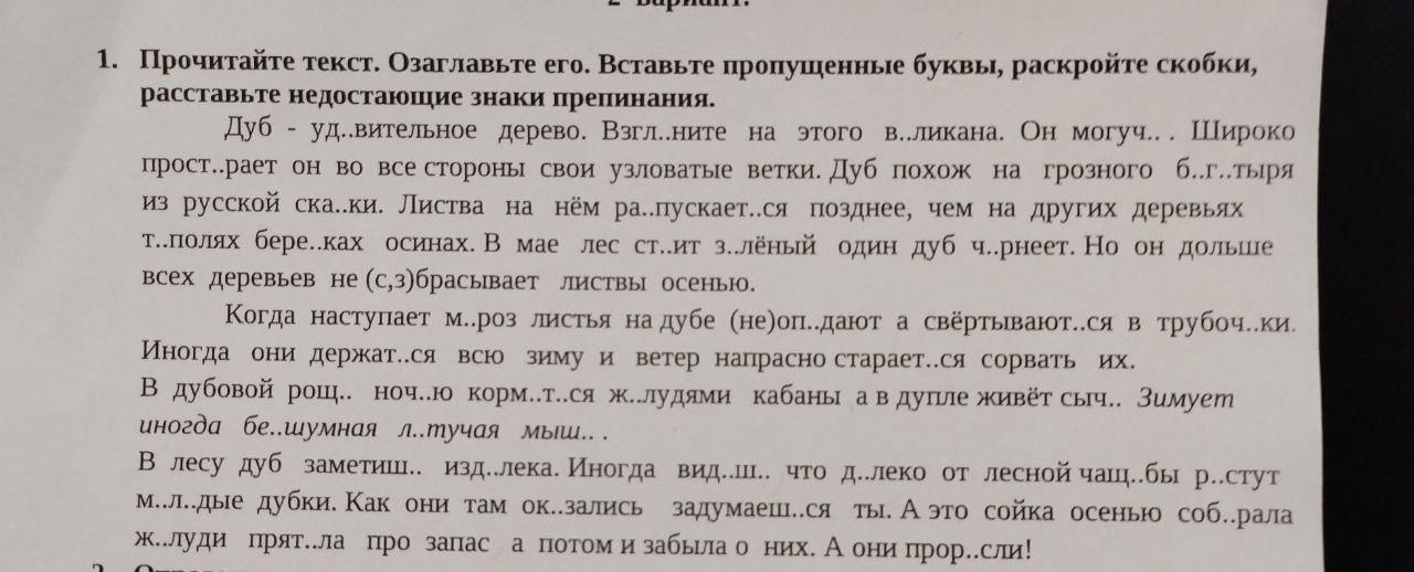 Дуб -удивительное дерево. Взгляните на этого великана. Он могучий. Широко простирает он во все стороны свои узловатые ветки. Дуб похож на Грозного богатыря из русской сказки. Листва на нëм распускается позднее, чем на других деревьях тополях березках осинах. В мае лес стоит зелёный один дуб чернеет. Но он дольше всех деревьев не забрасывает листвы осенью.