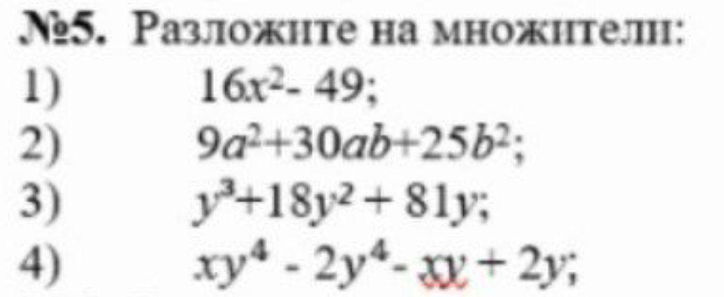 1) 16x^2 - 49 = (4x - 7)(4x + 7)