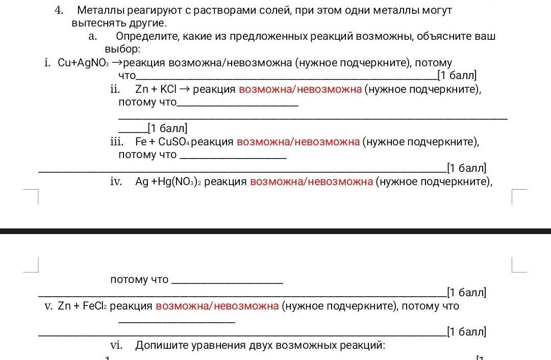 1. Fe + СиЅо реакция возможна/невозможна (нужное подчеркните), потому что