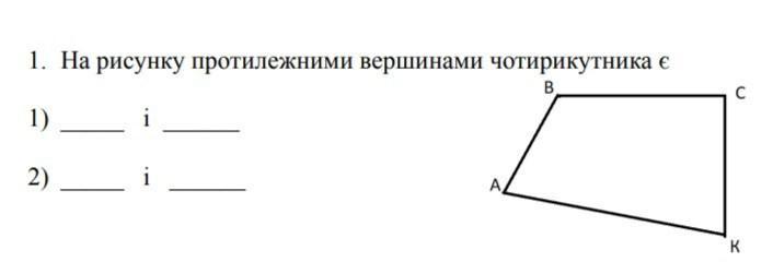 На рисунку протилежними вершинами чотирикутника є 1) ... i ... 2) ... i ...