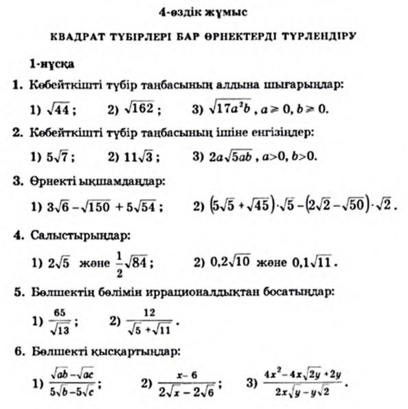 КВАДРАТ ТҮБІРЛЕРІ БАР ӨРНЕКТЕРДІ ТҮРЛЕНДІРУ