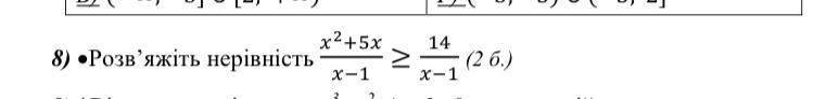 Розвʼяжіть нерівність x²+5x/x-1 ≥ 14/x-1