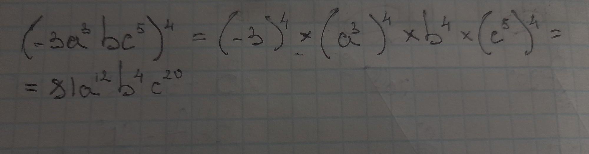 Подайте вираз у вигляді одночлена стандартного виду: 1) (-3a³bc⁵)⁴
