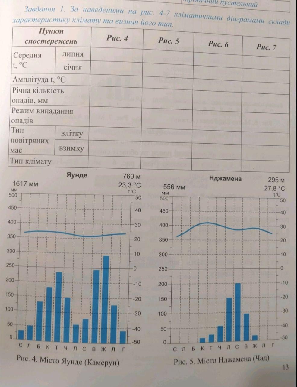 за наведеними на рис 4-7 кліматичними діаграмами склади характеристику клімату та визнач його тип