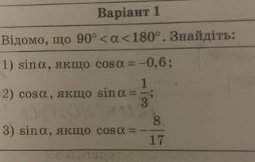 Відомо, що 90°<а<180°, Знайдіть: Пожалуйста помогите