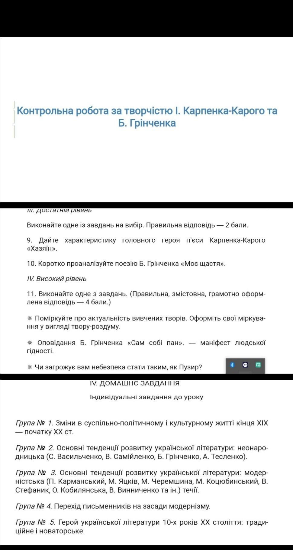 Контрольна робота за творчістю І. Карпенка-Карого та Б. Грінченка