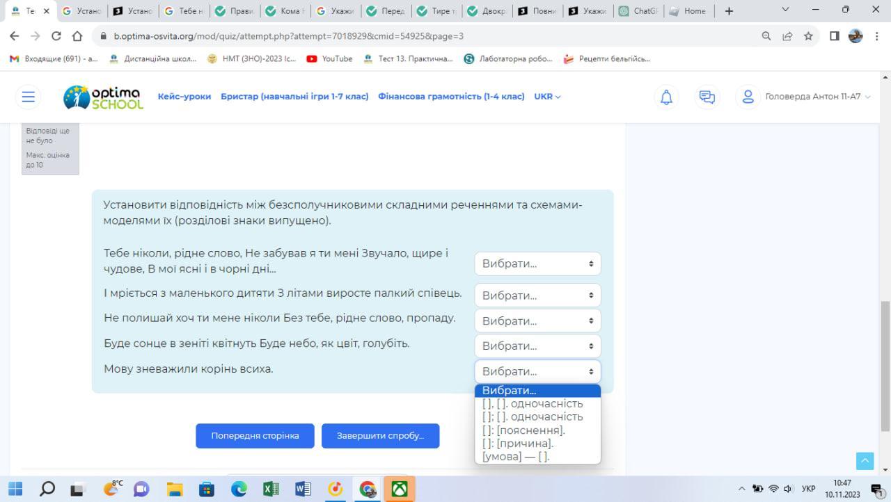 Тебе ніколи, рідне слово. Не забував я ти мені Звучало, щире чудове. В мої ясні і в чорні дні. - 11.1 (перелічення);