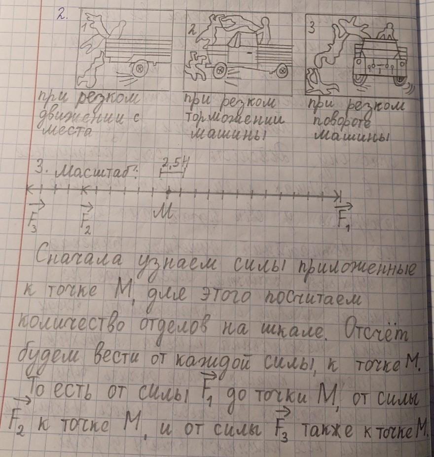 3. Сначала узнаем силы приложенные к точке М, для этого посчитаем количество отделов на шкале. Отсчёт будем вести от каждой силы, к точке М. То есть от силы F1 до точки М, от силы F2 к точке М, и от силы F3 также к точке М.