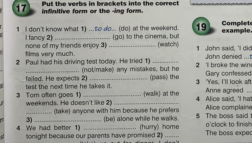 1 walking 2 taking 3 to be