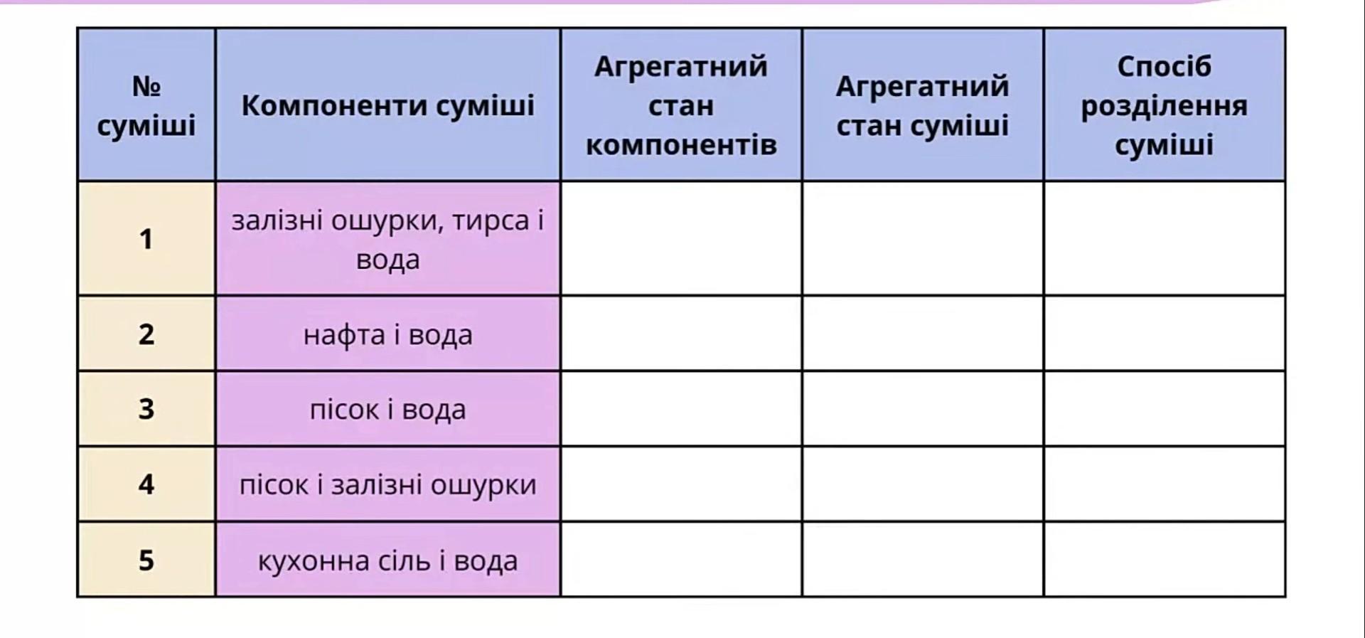 Компоненти: Залізні ошурки (твердий), тирса (твердий), вода (рідкий)