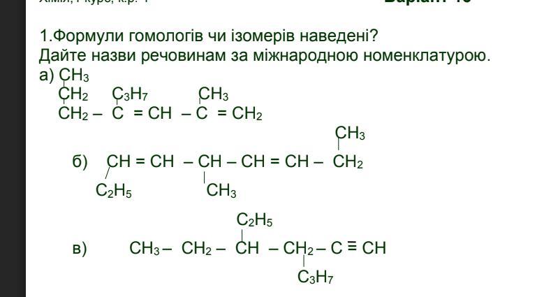 Ответ: а) изомери, б) гомологи в) гомологи