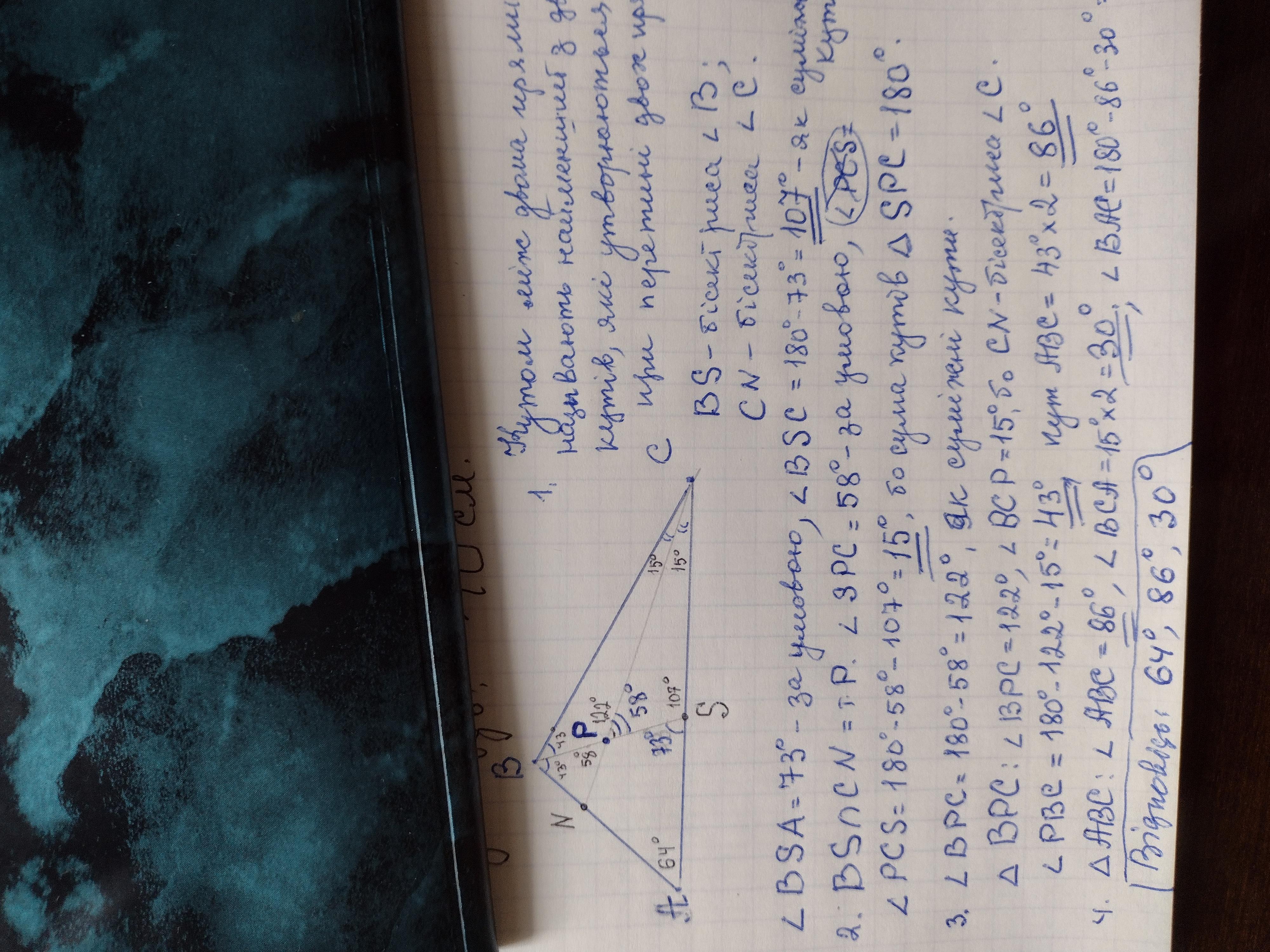 Ответ: 64° ; 86° ; 30°