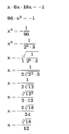 Розв’яжи рівняння x⋅6x⋅16x=−1, попередньо спростивши його ліву частину: