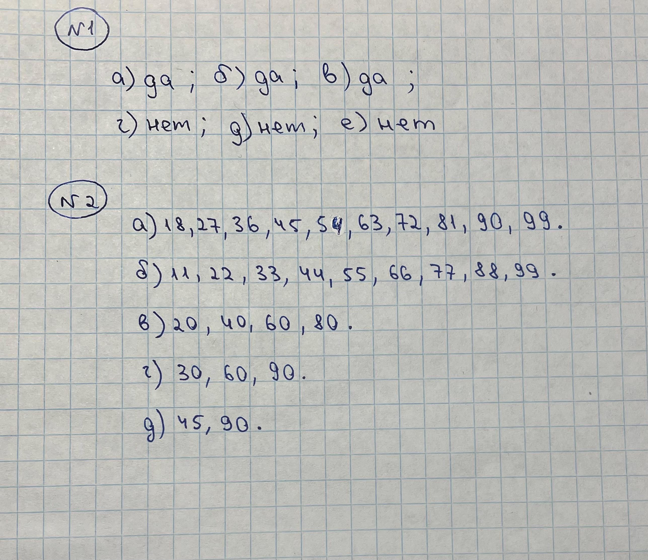 а) 18, 27, 36, 45, 54, 63, 72, 81, 90, 99.