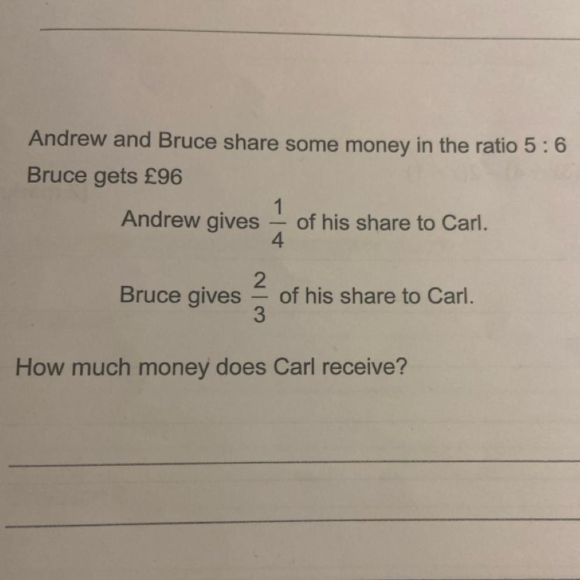 5) 20 + 64 = 84 (pounds) - Carl receives