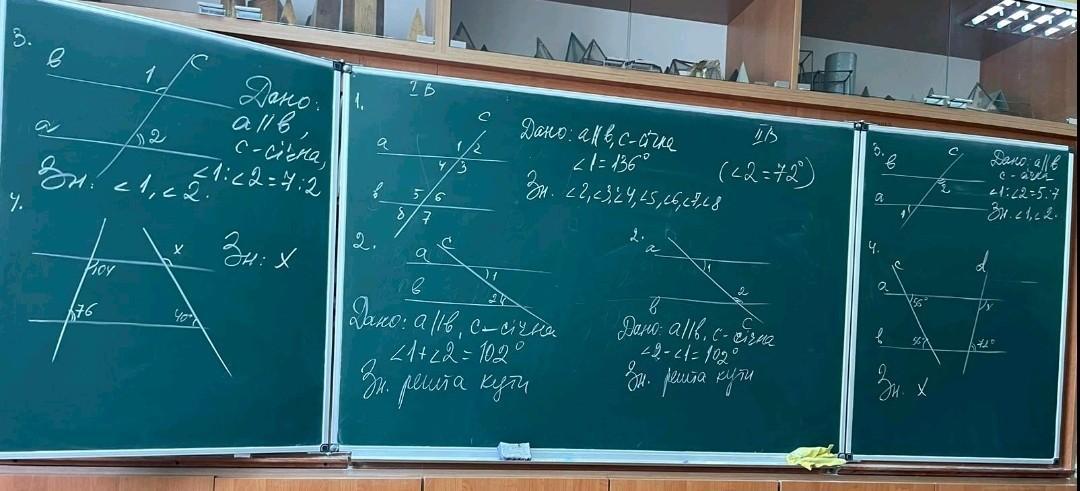 кутів 104° + 76° = 180° , тому за ознакою паралельності прямих