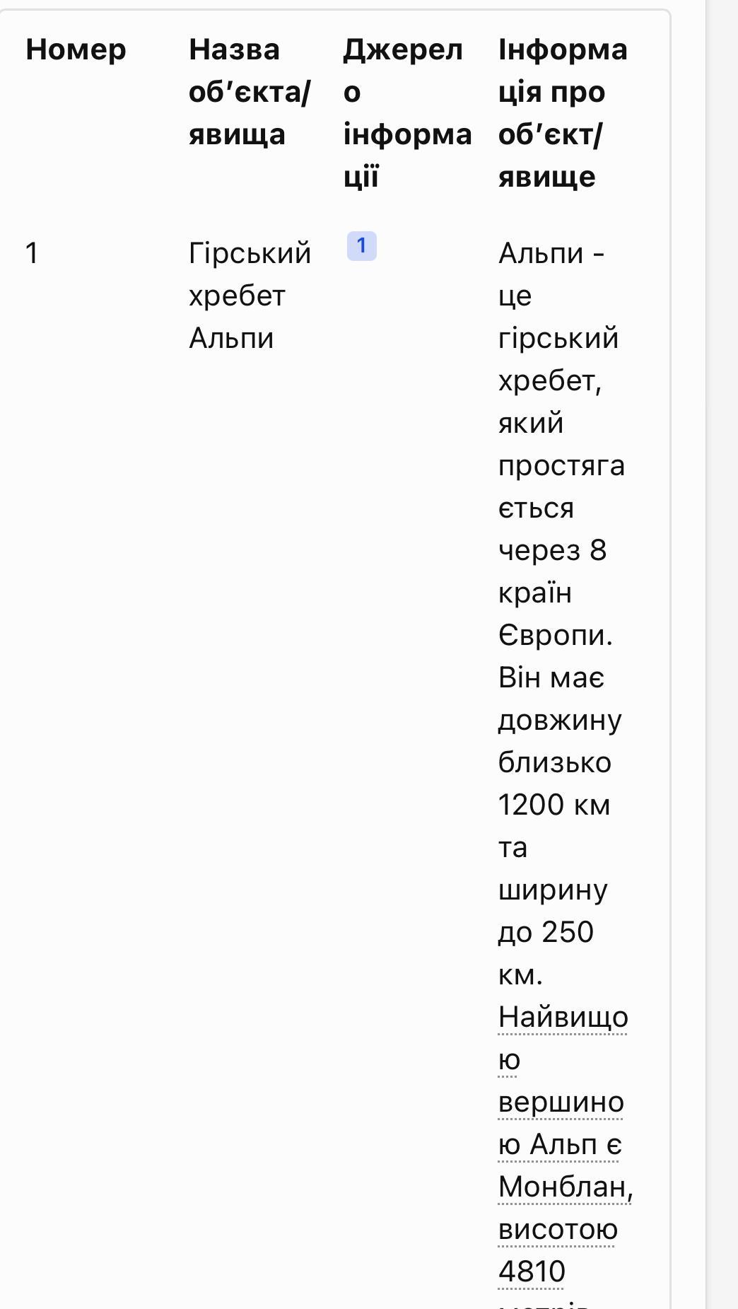 Виконайте письмово практичну " Добiр iнформацiï про об'єкт/явище природи з рiзних джерел". Вам потрібно обрати 5 рiзник об'єктiв/явищ та занести про них iнформацию до таблички. Назва стовпчиків вашої таблички 1- Номет, 2- Назва об'єкта/ явища, 3- джерело інформації, 4- сама iнформацiя про об'єкт/явище. Не забувайте про те, як ми оформлюємо практичну(назва, тема,мета, хід роботи, висновок)
