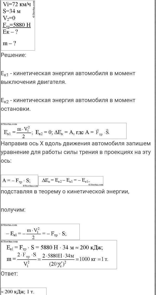 відстань 34 м, автомобіль зупинився. Якою була кінетична енергія автомобіля в