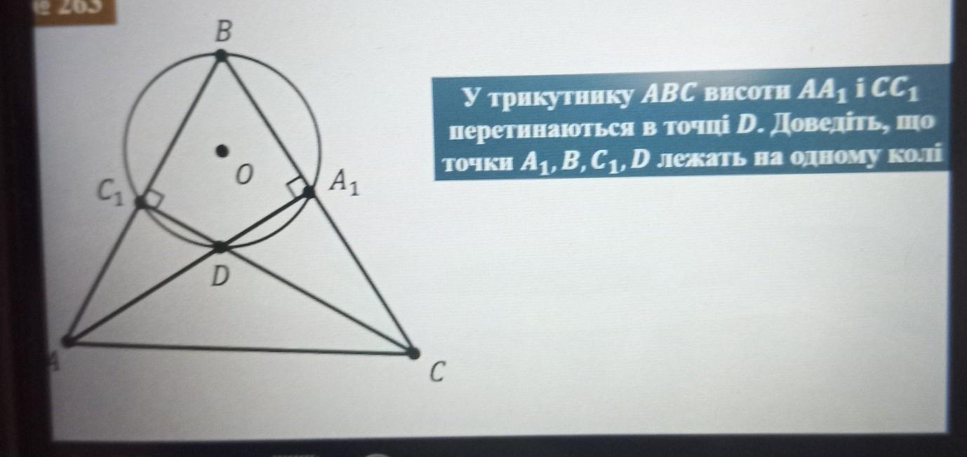 Це питання у самому низу завдання .Там ПОТРІБНО довести , що точки А1,В,С1,D лежать на одному колі ? БУДЬЛАСКА ВРЯТУЙТЕ МЕНЕ