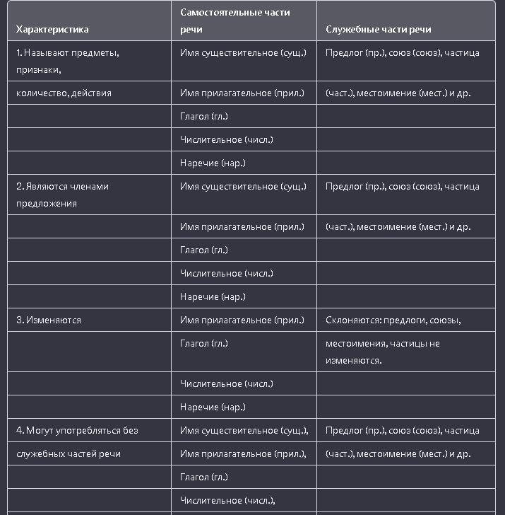 221. Заполните таблицу. Расскажите по ней о различиях служебных
