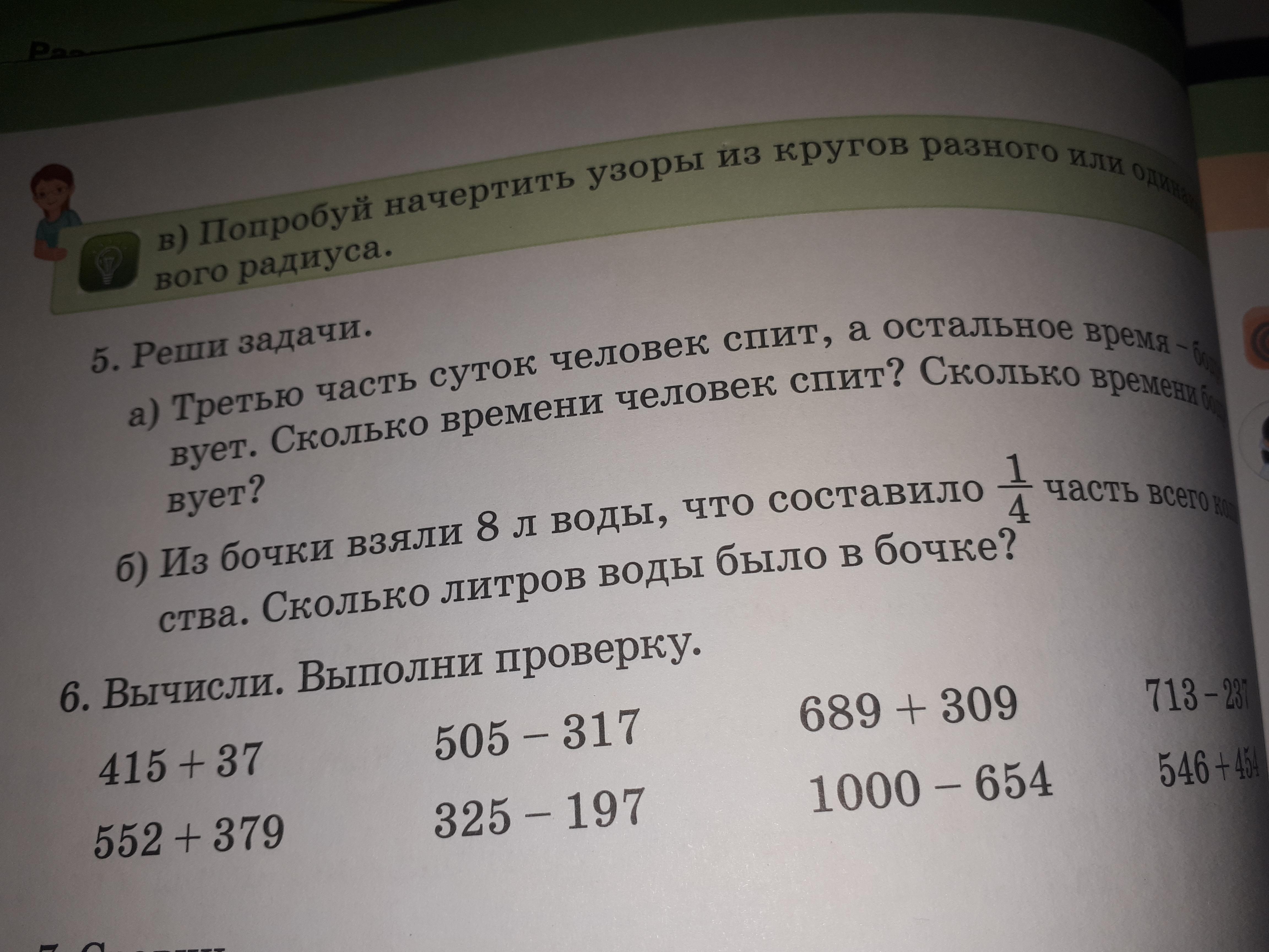 Третью часть суток человек спит, а остальное время-бодрствует. Сколько времени человек спит? Сколько времени бодрствует?