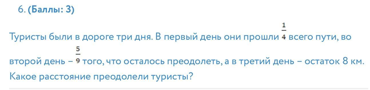 Пусть расстояние, которое преодолели туристы равно х км. ⇒