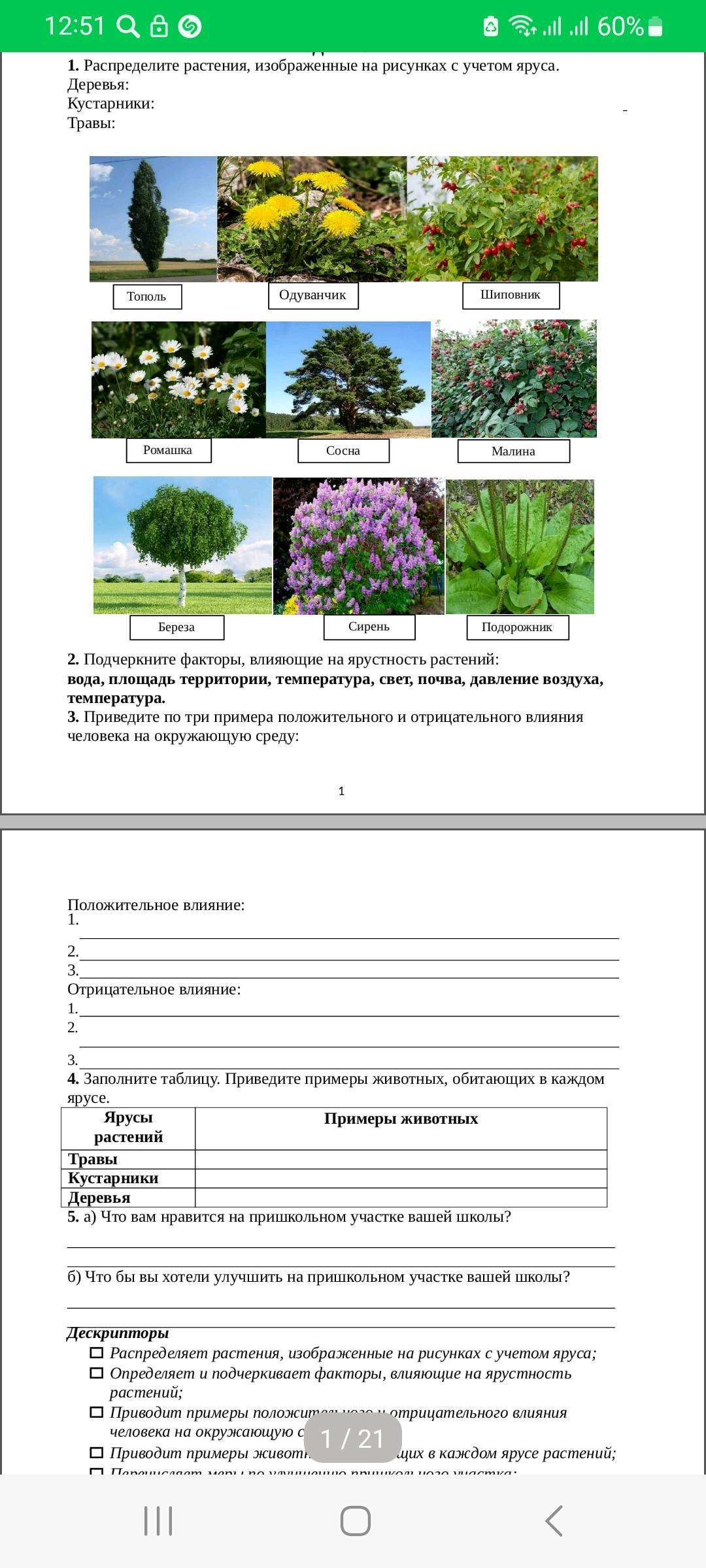 1. Растения, изображенные на рисунках, распределены по ярусам следующим образом:
